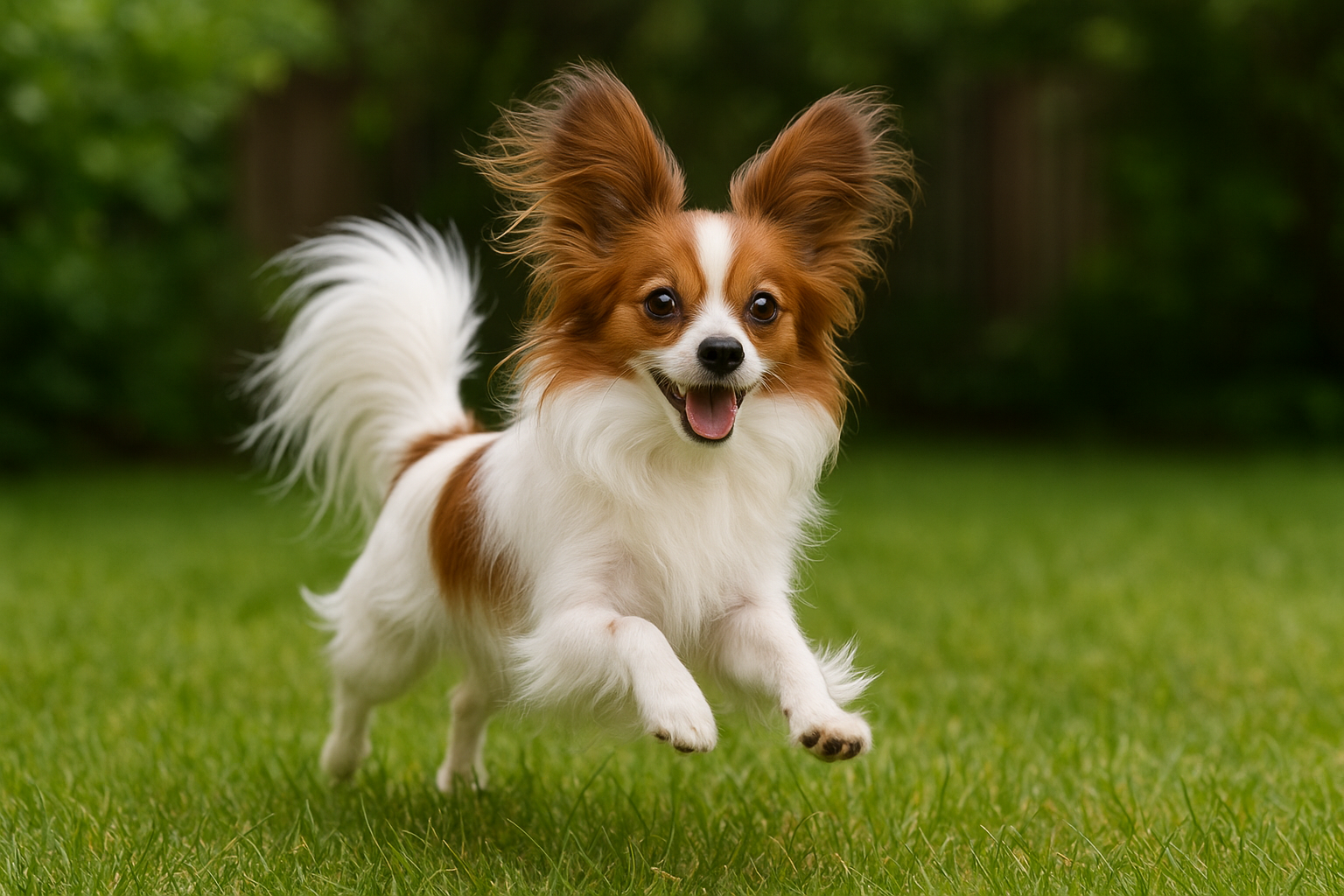 파피용은 에너지가 많고 활동적인 개로서 뛰어노는 것을 좋아합니다. 작은 체구이지만 실외에서 달리거나 장난감을 가지고 놀 때 놀라울 만큼 민첩하게 움직이며, 산책을 통해 신체적 활력을 유지하는 것을 즐깁니다. 또한 머리가 좋아 간단한 놀이뿐만 아니라 복잡한 트릭이나 지능형 훈련도 잘 따라옵니다. 이러한 점 때문에 파피용은 반려견 스포츠나 훈련 대회에서도 자주 등장하며, 뛰어난 집중력과 순발력으로 좋은 성적을 거두는 경우가 많습니다.