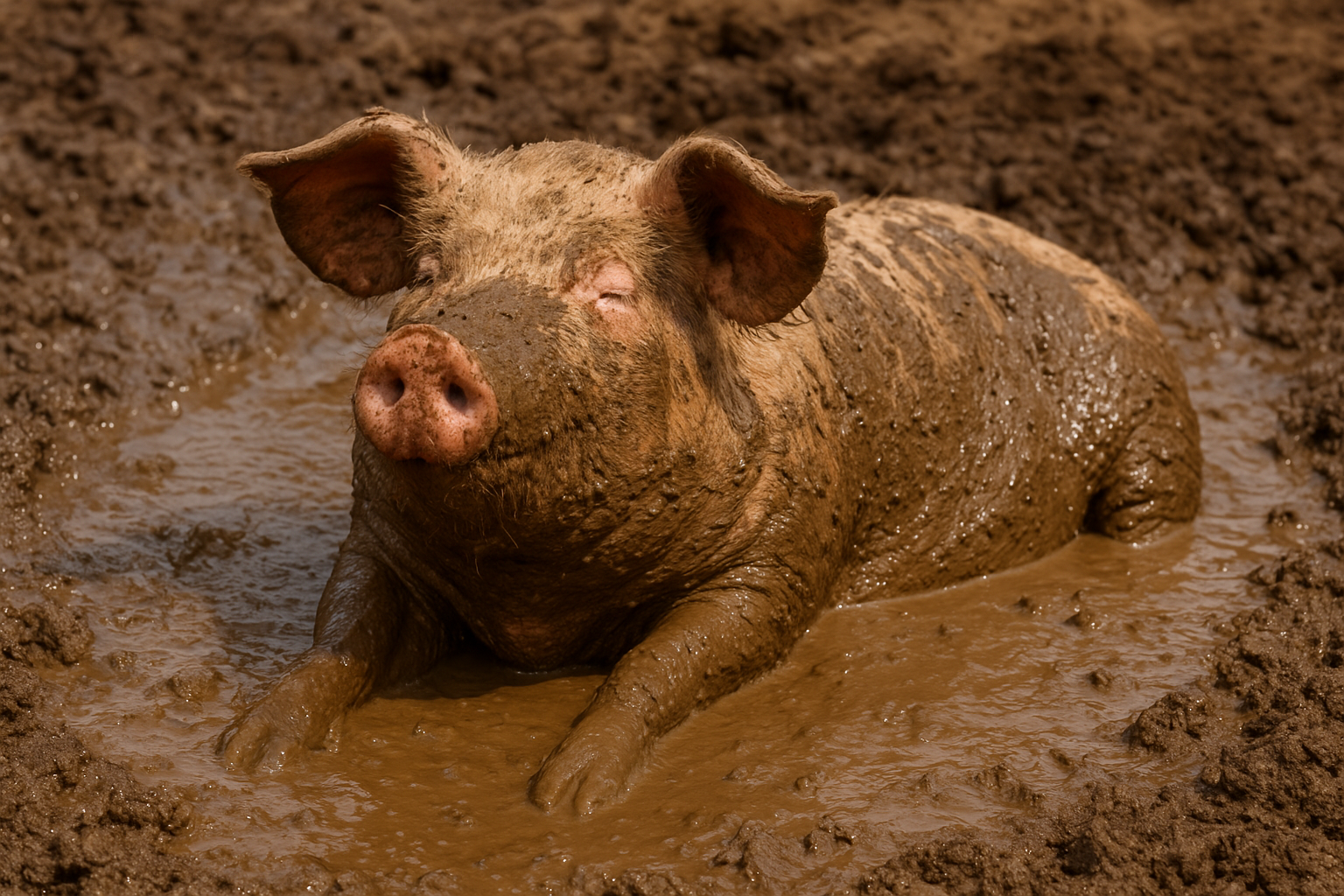 돼지의 또 다른 대표적인 특징은 진흙탕 목욕입니다. 많은 분이 이 행동을 더럽게 여길 수 있지만, 실제로는 돼지의 체온 조절과 피부 보호를 위한 아주 중요한 습성입니다. 돼지는 땀샘이 거의 없어서, 체온을 낮추기 위해 물이나 진흙에 몸을 담그는 행동을 자주 합니다. 특히 햇볕이 강한 날에는 더위를 견디기 위해 진흙탕에서 오랜 시간을 보내며, 몸에 묻은 진흙이 마르면서 자연스럽게 체온이 떨어지게 됩니다.