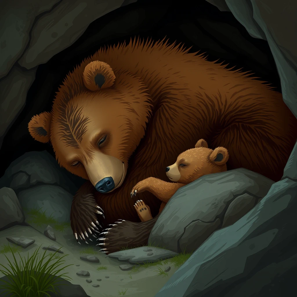 임신 기간이 지나면 불곰은 겨울잠을 자는 도중에 새끼를 낳게 됩니다. 태어난 새끼는 매우 작고 연약하며, 눈도 뜨지 못한 채로 태어나 어미 곁에서 체온을 얻고 젖을 먹으며 자랍니다. 어미는 잠든 상태에서도 새끼의 움직임에 반응하며 젖을 먹이거나 품어주는 본능적인 행동을 이어갑니다. 새끼는 어미의 따뜻한 몸 아래에서 자라나며, 겨울이 끝날 무렵에는 걷고 움직일 수 있을 정도로 성장합니다. 겨울잠이 끝나면 어미와 새끼는 함께 굴을 나와 봄 햇살 아래에서 활동을 시작하게 되며, 이후에도 어미는 수개월에서 일 년 이상 새끼를 데리고 다니며 생존 방법을 가르칩니다.