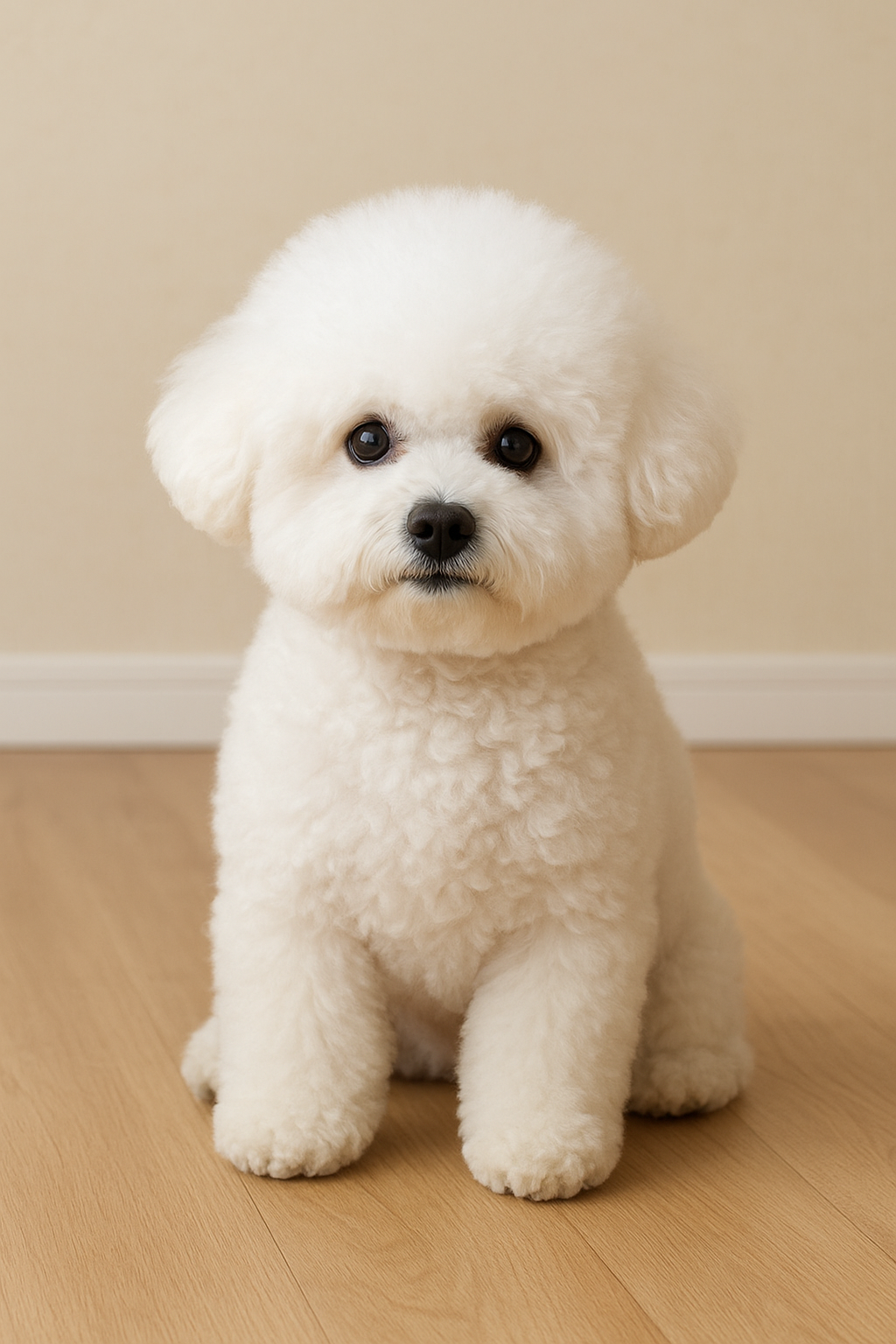 비숑프리제의 생김새를 살펴보면 가장 먼저 눈에 띄는 부분은 풍성한 털입니다. 털은 부드럽고 곱슬곱슬하게 말려 있으며, 손으로 만지면 마치 솜을 만지는 듯한 포근한 느낌이 납니다. 이 털은 비숑프리제의 대표적인 상징으로, 빛을 받으면 은은한 윤기가 흐르며 얼굴 전체를 둥글게 감싸 귀엽고 온화한 인상을 줍니다. 털의 색은 거의 대부분 순백색이며, 드물게 크림색이나 살짝 베이지빛이 섞인 개체도 있지만 기본적으로는 눈처럼 하얀 색이 가장 일반적입니다.